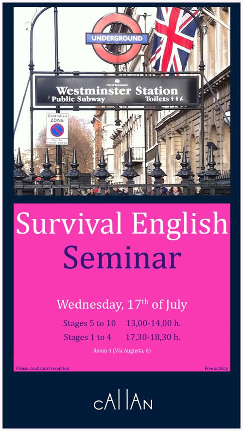 Callan School of English es complau a convidar a participar en el nou Seminari que es realitzarà el proper dimecres 17 de juliol, «Survival English Seminar.»