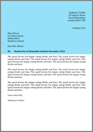 Check that your grammar and spelling are accurate. Do not use ‘can’ when asking for something, use the more formally appropriate ‘could’. ‘Should’ is often preferred instead of ‘if’ (e.g Should you wish to contact me, my telephone number is…). Try not to repeat the same kind of information again and again. While the language is formal, don’t get carried away with your pleases and thank yous!