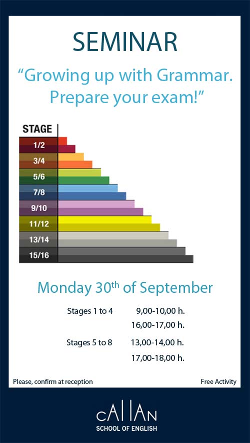 Barcelona Callan students can prepare their examinations in English Courses, sessions that we have organized for our next seminar: “Growing up with grammar. Prepare your Exam”.