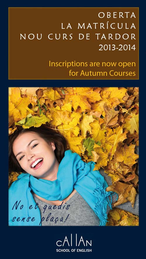 La Academia de Inglés Callan Barcelona, se complace en comunicarle el inicio de los Cursos de Otoño correspondientes al 1er Trimestre Lectivo del Curso 2013-2014, el próximo día 4 de Octubre.