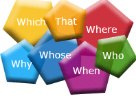 We use the words ‘who’, ‘which’ and ‘that’ in relative clauses. These words are called relative pronouns. The difference between these words is that we use ‘who’ for people, ‘which’ for things and animals and ‘that’ for people, things and animals.